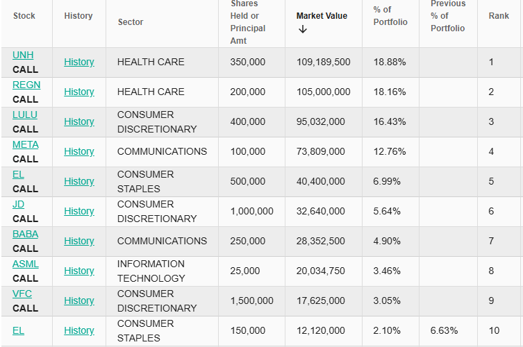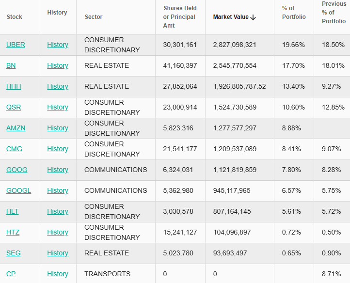 Abaixo a carteira da Pershing Square.