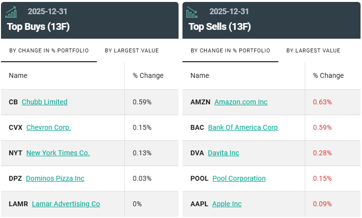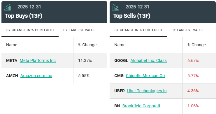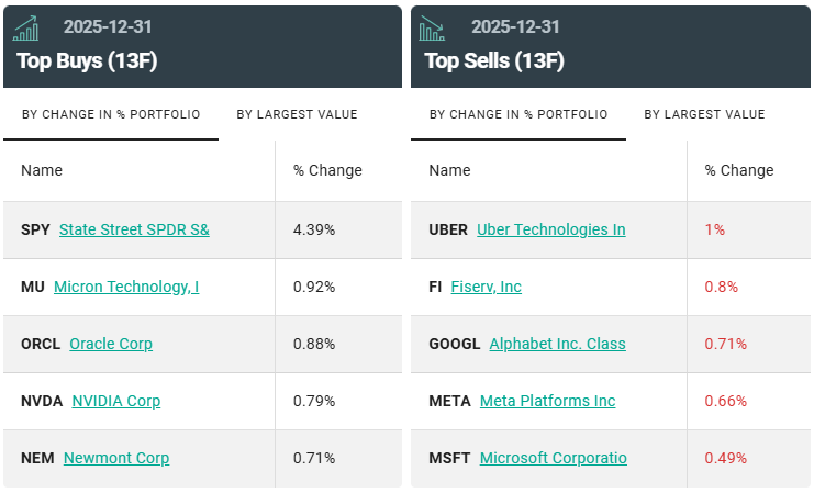 Neste artigo, trazemos um resumo dos movimentos mais recentes de cinco gestores globais renomados, com base nos relatórios 13F depositados na SEC (Securities and Exchange Commission) referentes ao quarto trimestre de 2025 (dados de 31 de dezembro de 2025).