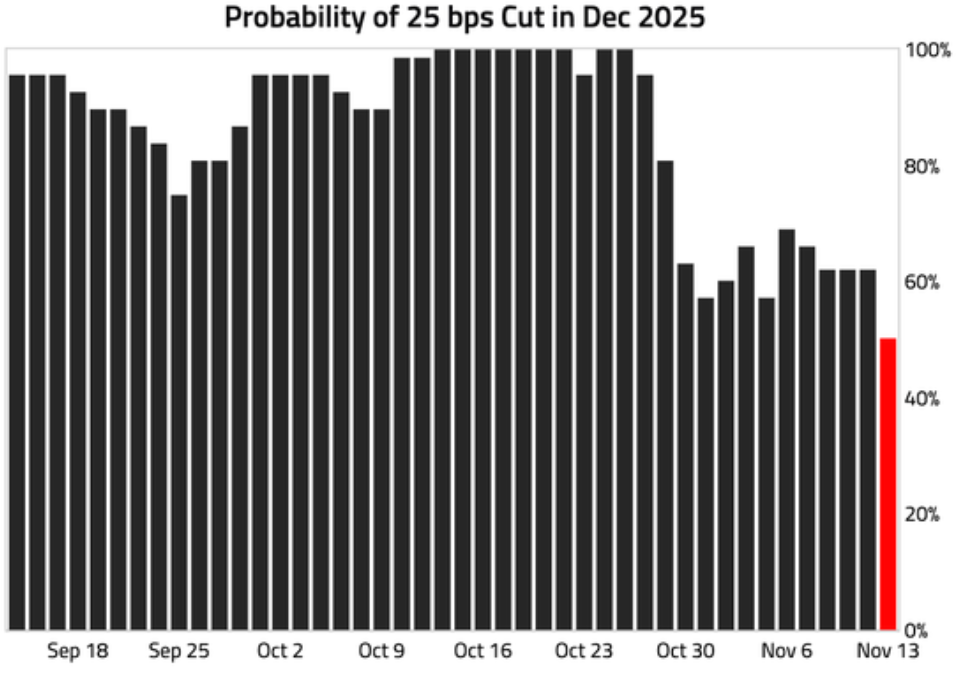 No entanto, os comentários “hawkish” (mais duros ou cautelosos em relação à inflação) de autoridades do Federal Reserve (Fed) nesta semana de novembro de 2025 foram o principal motivo para o mercado rever para baixo as chances de um corte de juros em dezembro. Em resumo, esses pronunciamentos destacam preocupações com a persistência da inflação, a resiliência da economia e a falta de dados confiáveis devido à recente paralisação do governo – o que levou investidores a reduzir as apostas de um corte de 0,25 ponto percentual, de aproximadamente 70% no início da semana, para apenas 50% ou menos.