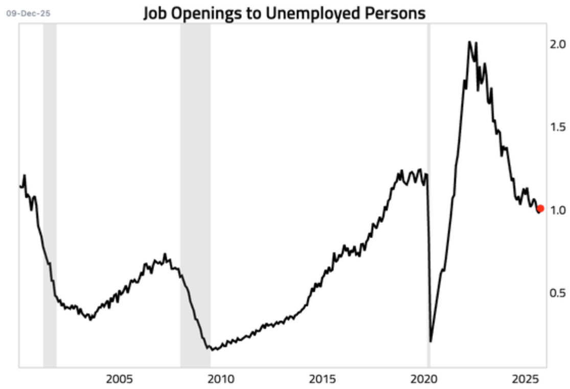 Para não deixar passar batido, além da decisão de juros, tivemos o relatório JOLTS (Job Openings and Labor Turnover Survey) do mercado de trabalho americano, divulgado na terça-feira (9 de dezembro) pelo Bureau of Labor Statistics. O relatório oferece uma visão ampla do mercado de trabalho americano. Os seguintes pontos chamaram nossa atenção: