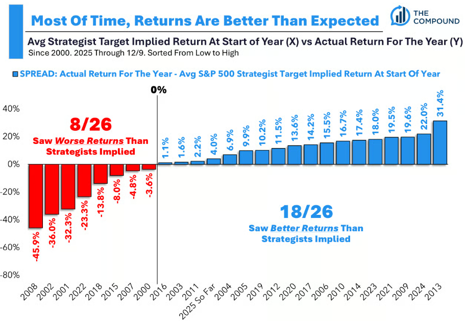 Fonte: 25 Years of S&P 500 Forecasts 10/dez/2025