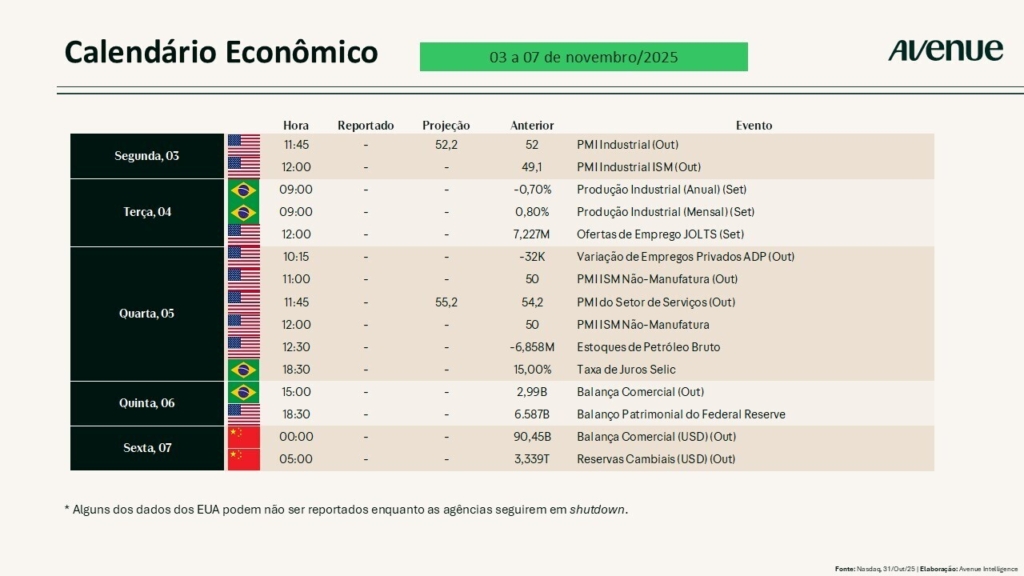 Fonte: Bloomberg. Elaboração: Avenue Intelligence – 29/out/2025.