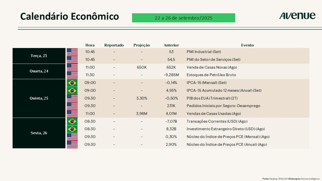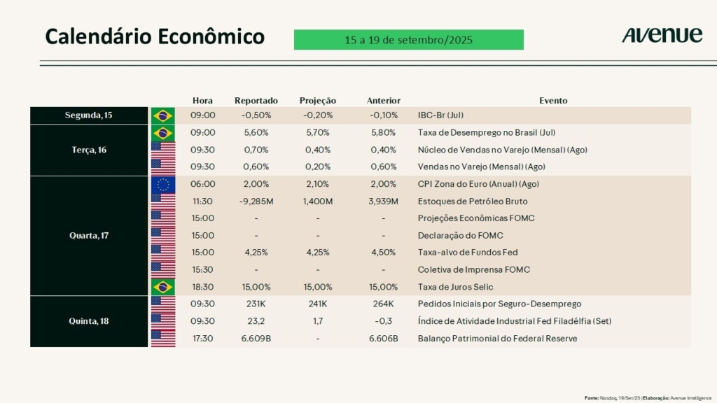 Fonte: Bloomberg (elaboração Avenue Intelligence, 17/set/2025)