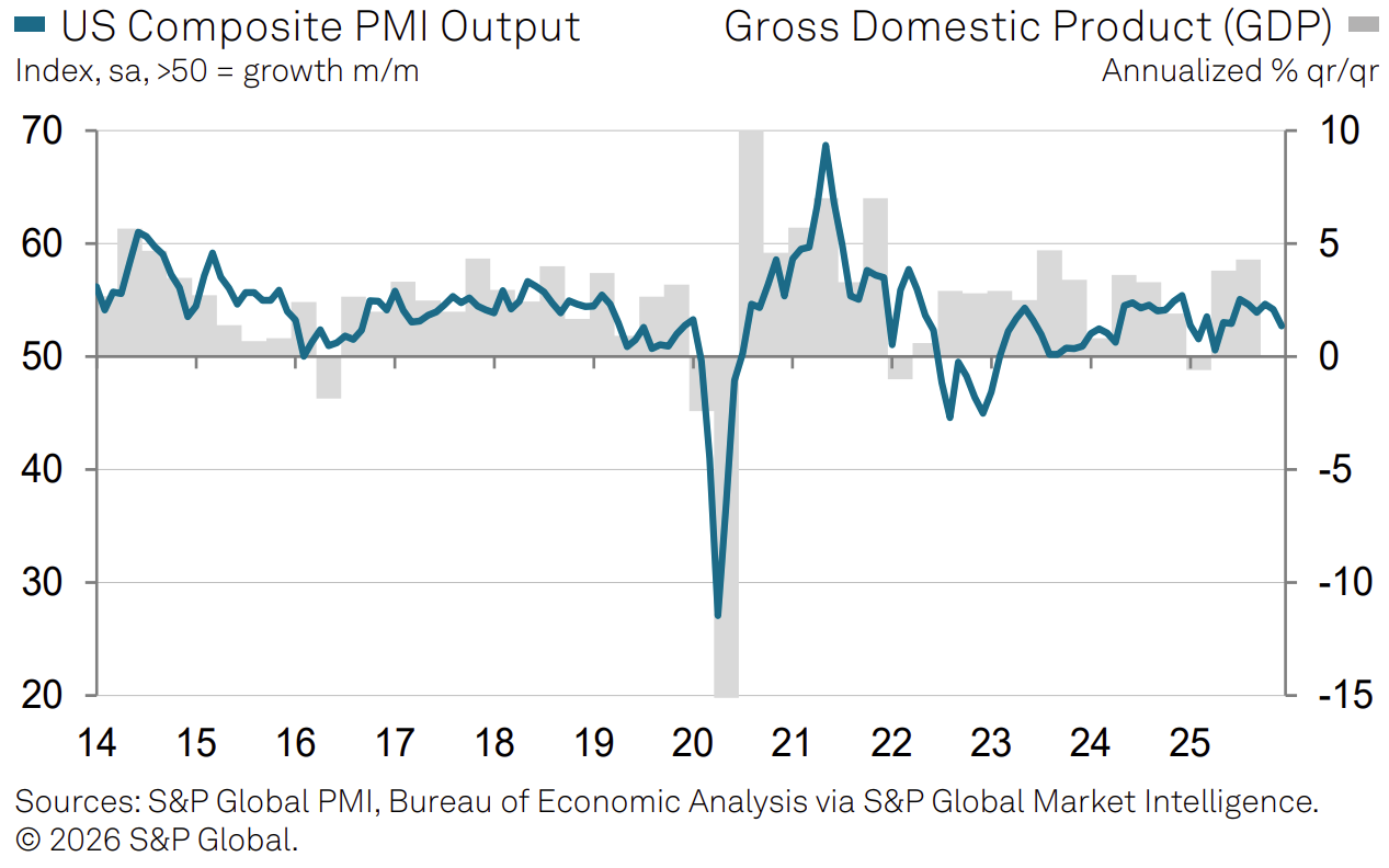 Chris Williamson, Chief Business Economist da S&P Global Market Intelligence, destacou o enfraquecimento da demanda, com pedidos na manufatura caindo pela primeira vez em um ano, e alertou que crescimento mais lento, preços em alta e expectativas de produção futura menores podem tornar o início de 2026 mais desafiador.