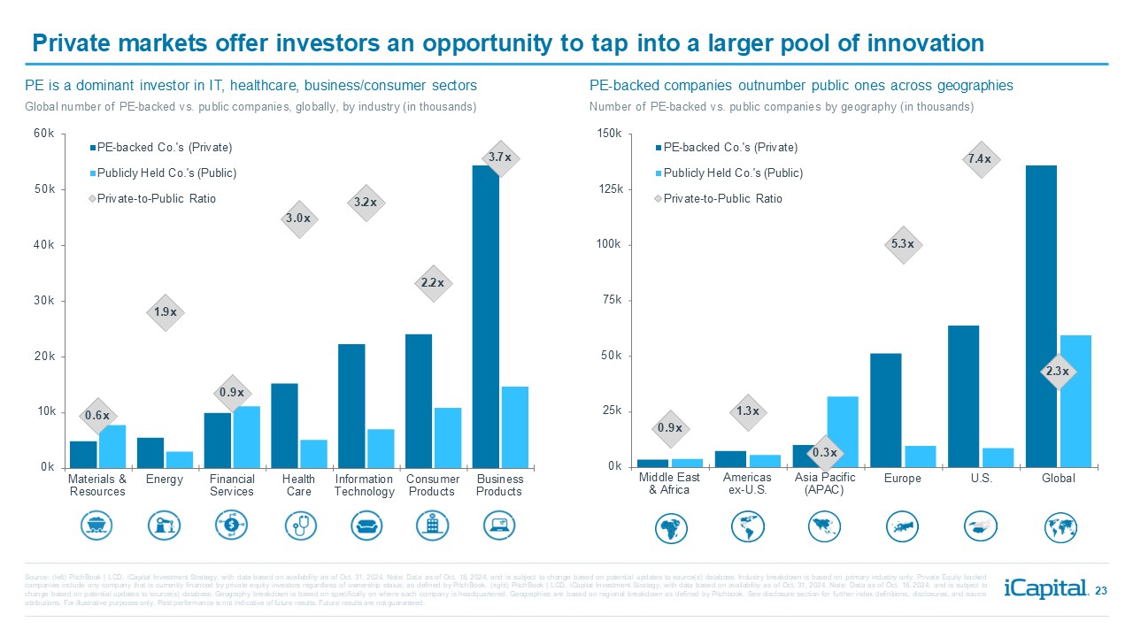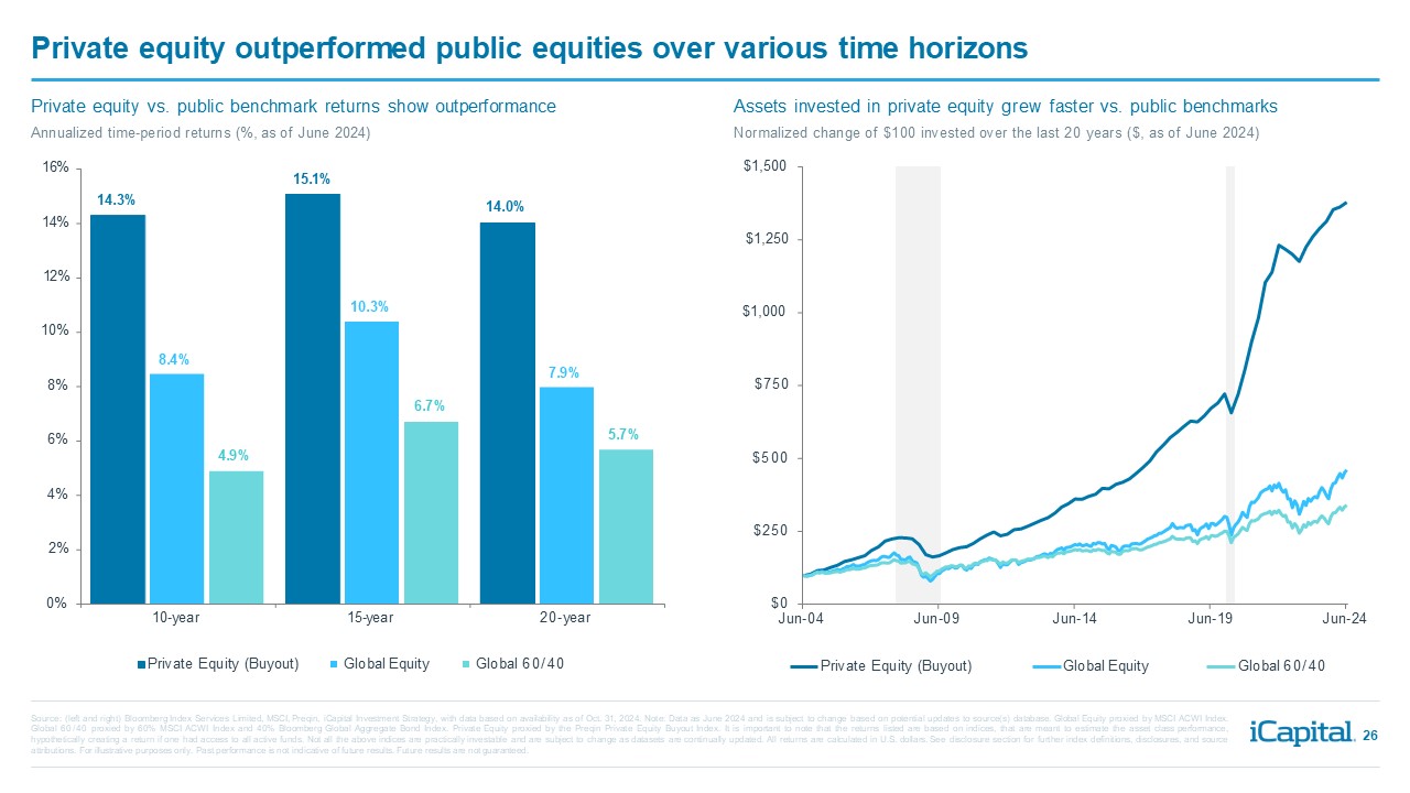 Sobre a alocação, Rovira destaca o fator retorno: dados comparativos mostram que, no longo prazo, os ativos privados superam seus equivalentes públicos em termos de performance ajustada ao risco.