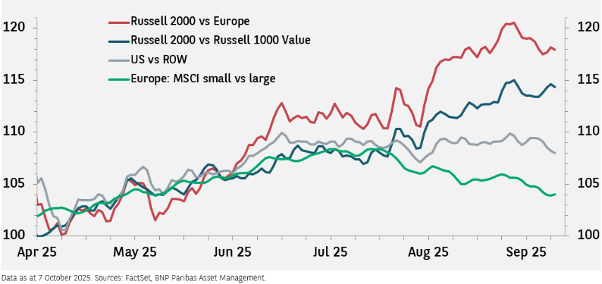 Acreditamos que as condições atuais favorecem um período de desempenho superior sustentado pelas ações de small caps dos EUA, em relação às partes não‑tecnológicas do mercado americano e da Europa.