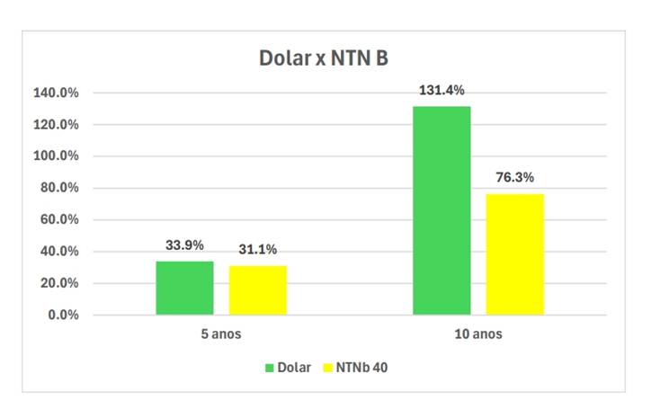 Fica claro que o investimento em Tesouro IPCA+ não protege o brasileiro contra os efeitos da variação cambial. No período de 10 anos, essa variação foi quase o dobro da rentabilidade do Tesouro IPCA+. Portanto, dolarizar a carteira segue sendo essencial.