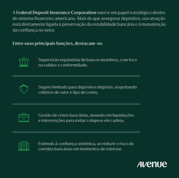 A Federal Deposit Insurance Corporation exerce um papel estratégico dentro do sistema financeiro americano.