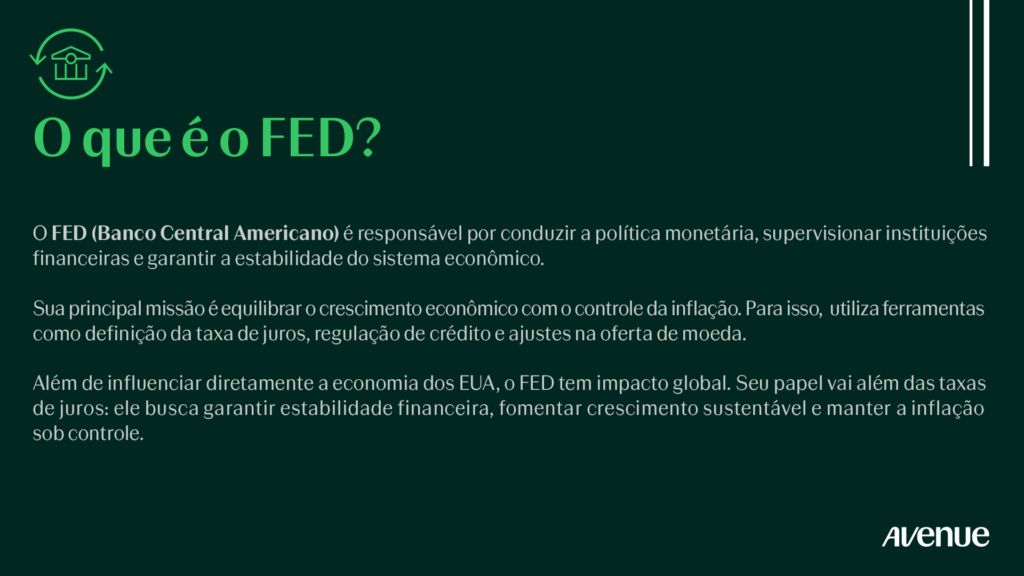 Com o conhecimento sobre essas funções, o investidor consegue entender bem o que é o FED para a economia americana: uma instituição que molda o ambiente macroeconômico e que influencia empresas, consumidores e investidores dentro e fora dos EUA.