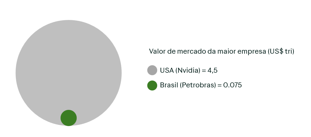 Logo, a maior empresa americana é mais de 4 vezes maior que todo o mercado brasileiro somado. Essa é uma diferença crucial quando se comparam os dois países. Essa diferença de escala tende também a oferecer mais liquidez, e um mercado mais arbitrado pelo envolvimento de um enorme número de players.