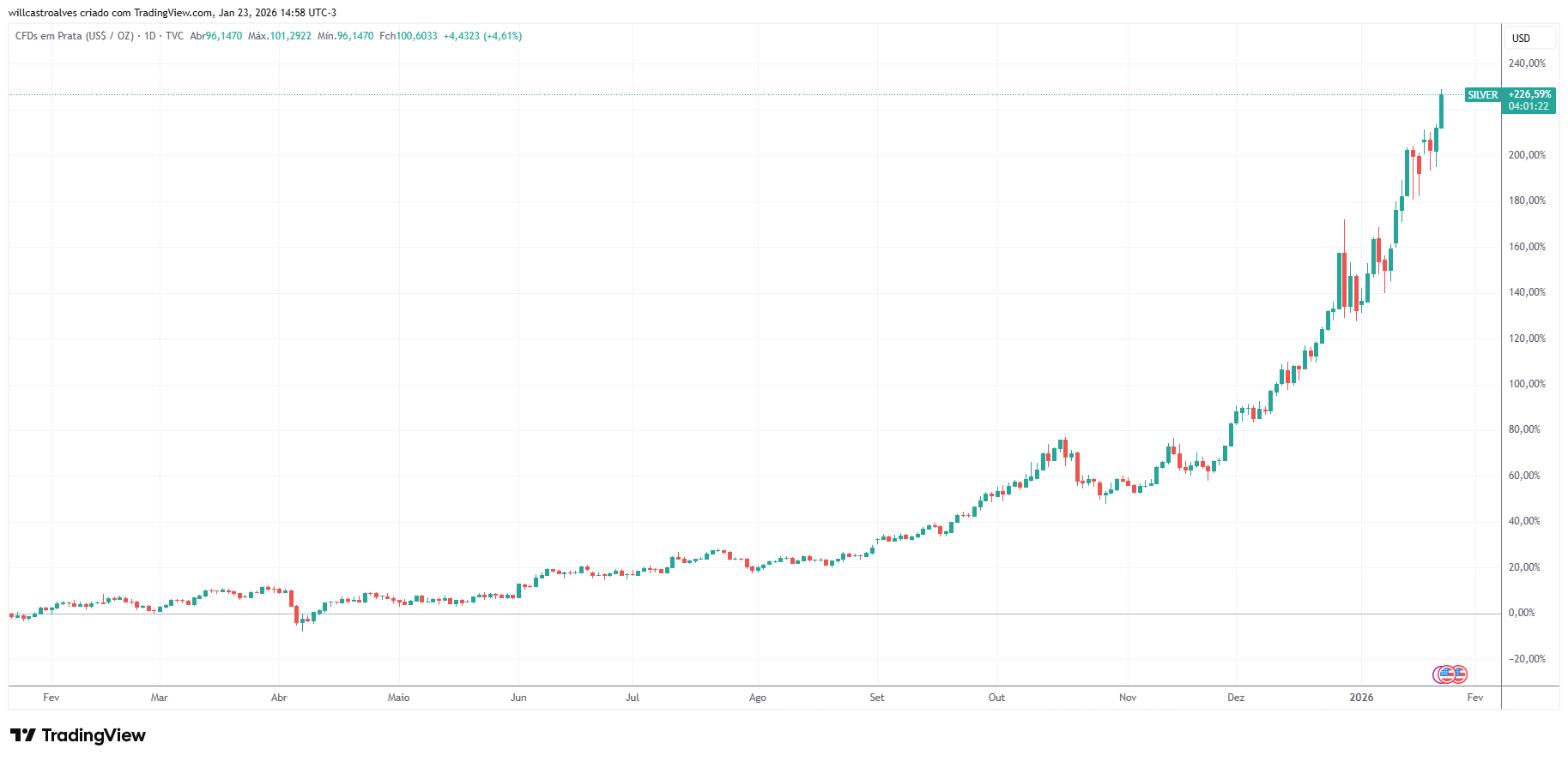 Fonte: Tradingview.com, 23/jan/2026 – Ouro