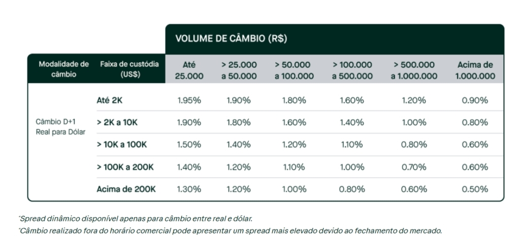 Essa estrutura beneficia especialmente quem movimenta valores mais altos ou realiza operações com frequência, reduzindo custos ao longo do tempo.