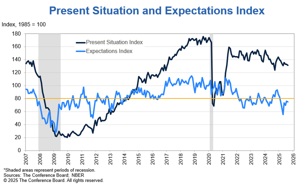 “A confiança do consumidor caiu ligeiramente em agosto, mas permaneceu em um nível semelhante ao dos últimos três meses. A situação atual e os componentes das expectativas enfraqueceram. A avaliação dos consumidores sobre a disponibilidade atual de empregos caiu pelo oitavo mês consecutivo, mas visões mais fortes sobre as condições atuais dos negócios atenuaram a queda no Índice da Situação Atual. Enquanto isso, o pessimismo sobre a disponibilidade futura de empregos aumentou e o otimismo sobre a renda futura diminuiu ligeiramente; por outro lado, esses fatores foram parcialmente compensados por expectativas mais fortes sobre as condições futuras dos negócios.”